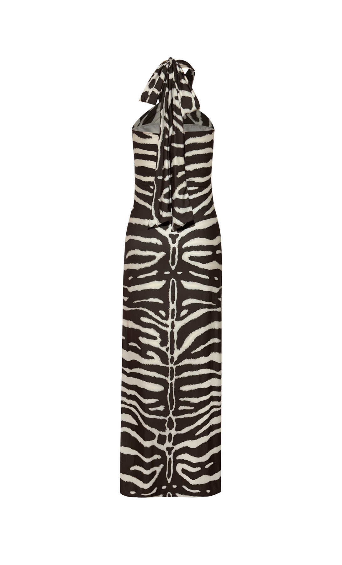 Embrace boldness and style with the Ramtin Maxi Dress, a piece that redefines modern elegance. Featuring a halter neckline with ties at the neck, this long dress exudes a seductive and sophisticated aura. The fitted silhouette beautifully contours the figure, while Especia's exclusive print adds an artistic and distinctive touch. Designed for those who seek to stand out with a unique, character-filled look.
