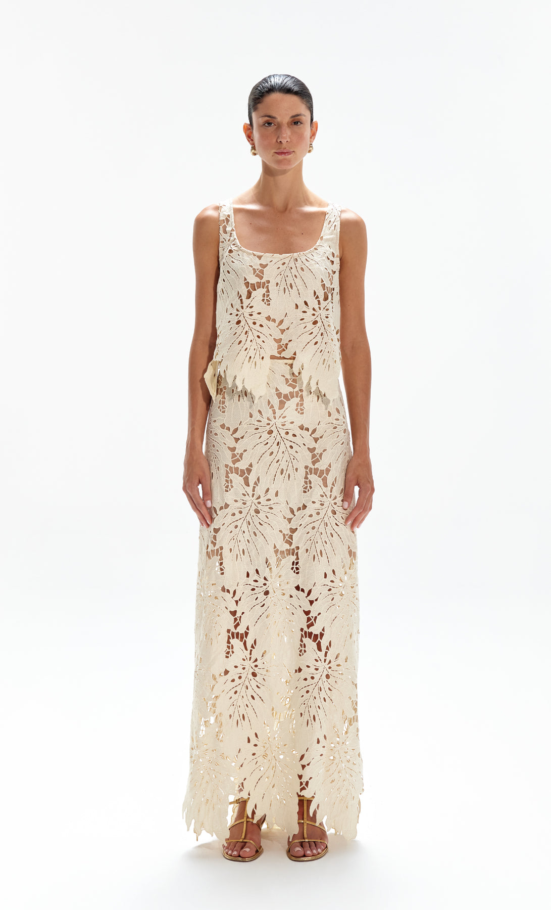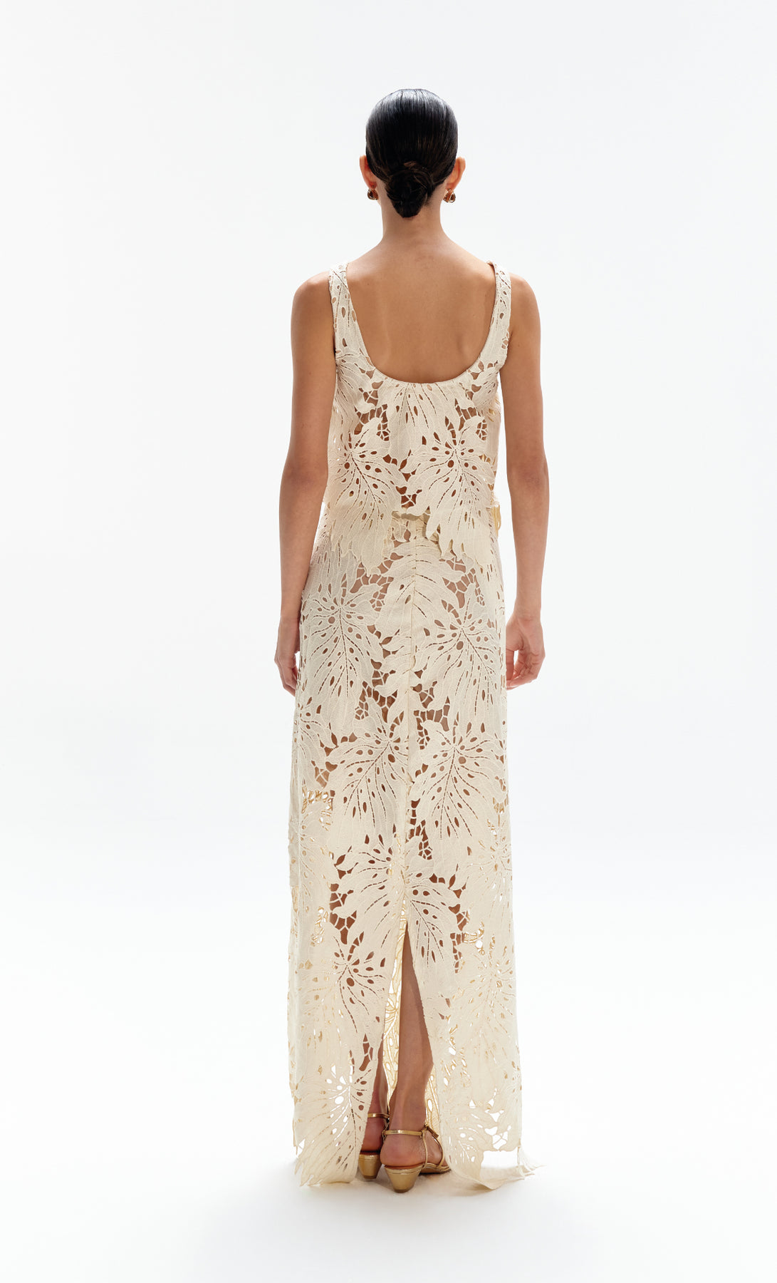 The Ovata Butter blouse, with its semi-fitted silhouette, brings a fresh, effortless feel to your look. The internal mesh lining adds subtle structure and comfort, while the exclusive Especia guipure fabric lends a delicate, elegant finish. A versatile piece with a distinctive touch, it pairs beautifully with the Lantana Butter skirt.