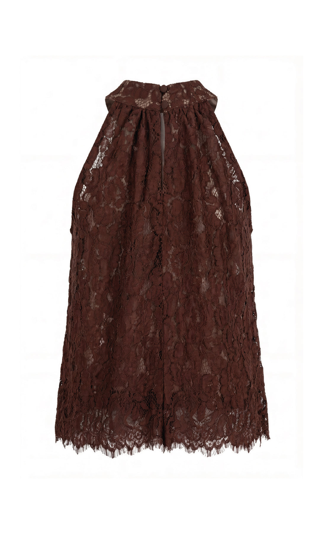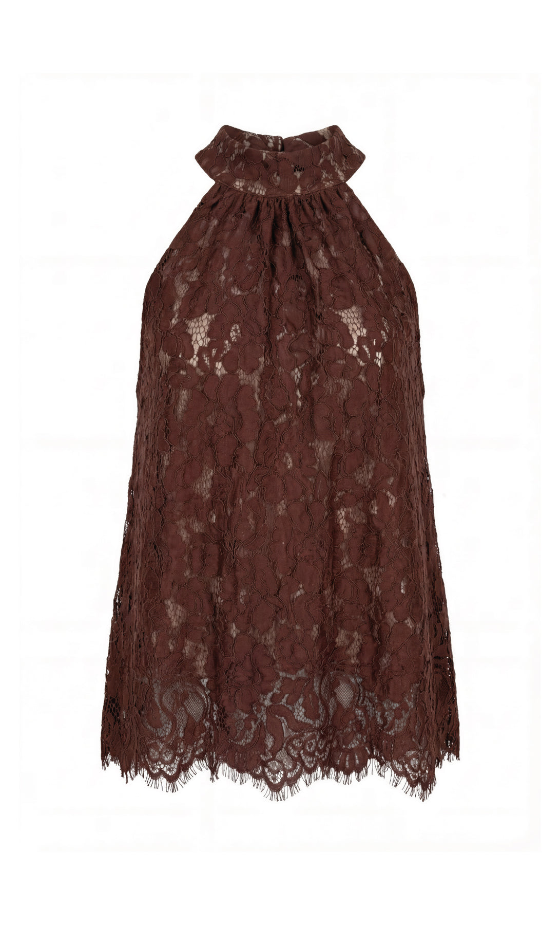 The Mousse Blouse combines comfort and style with a sophisticated touch. Its loose silhouette offers freedom of movement, while the halter-style neckline and high neck with tie straps add a feminine and elegant detail that elevates any look. Made from Especia exclusive lace fabric. Perfect to pair with the Jade Chocolate long pants.