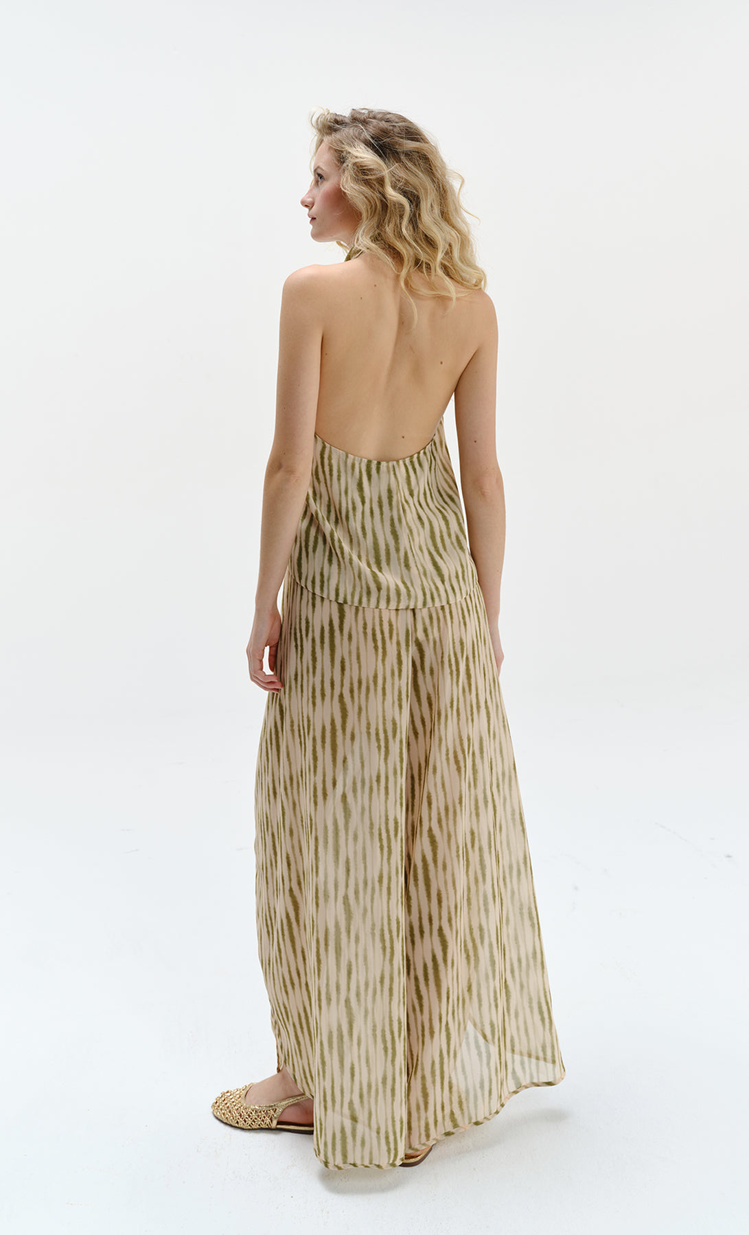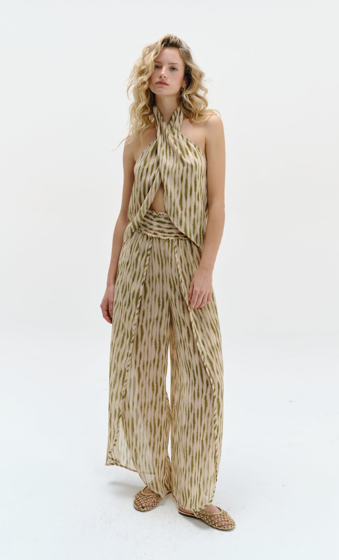 The Amankora maxi pants feature a wide-leg silhouette with a wrap design that flows around the legs, creating graceful movement with every step. The elasticated waistband provides a comfortable, adaptable fit, while the inner nude mesh shorts lining adds coverage and confidence. Finished with an exclusive Especia print, they are a standout yet versatile piece.