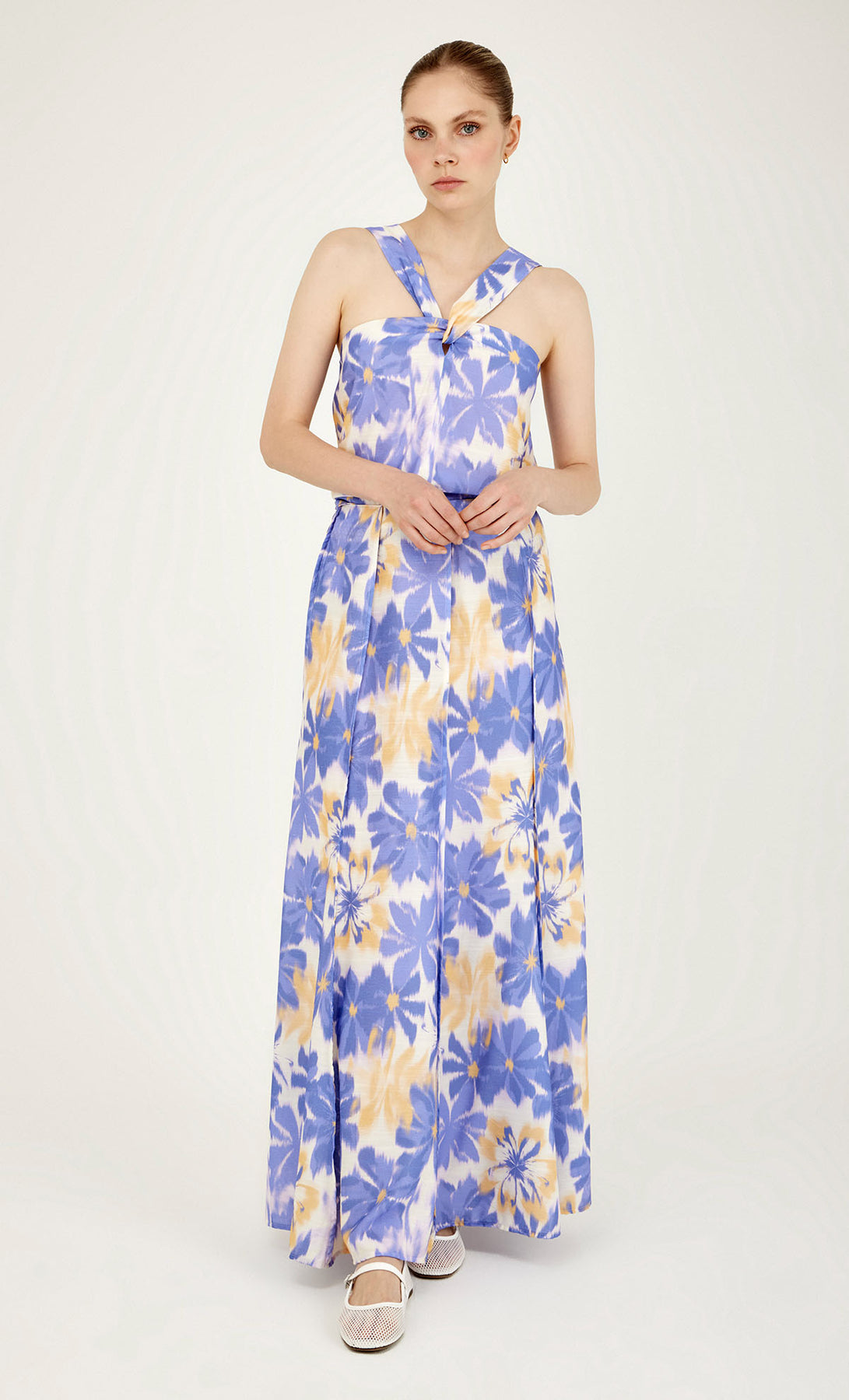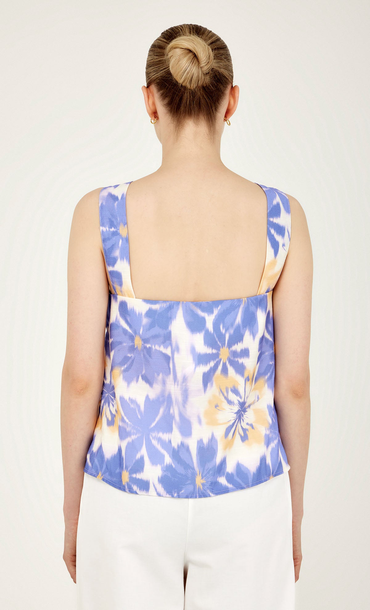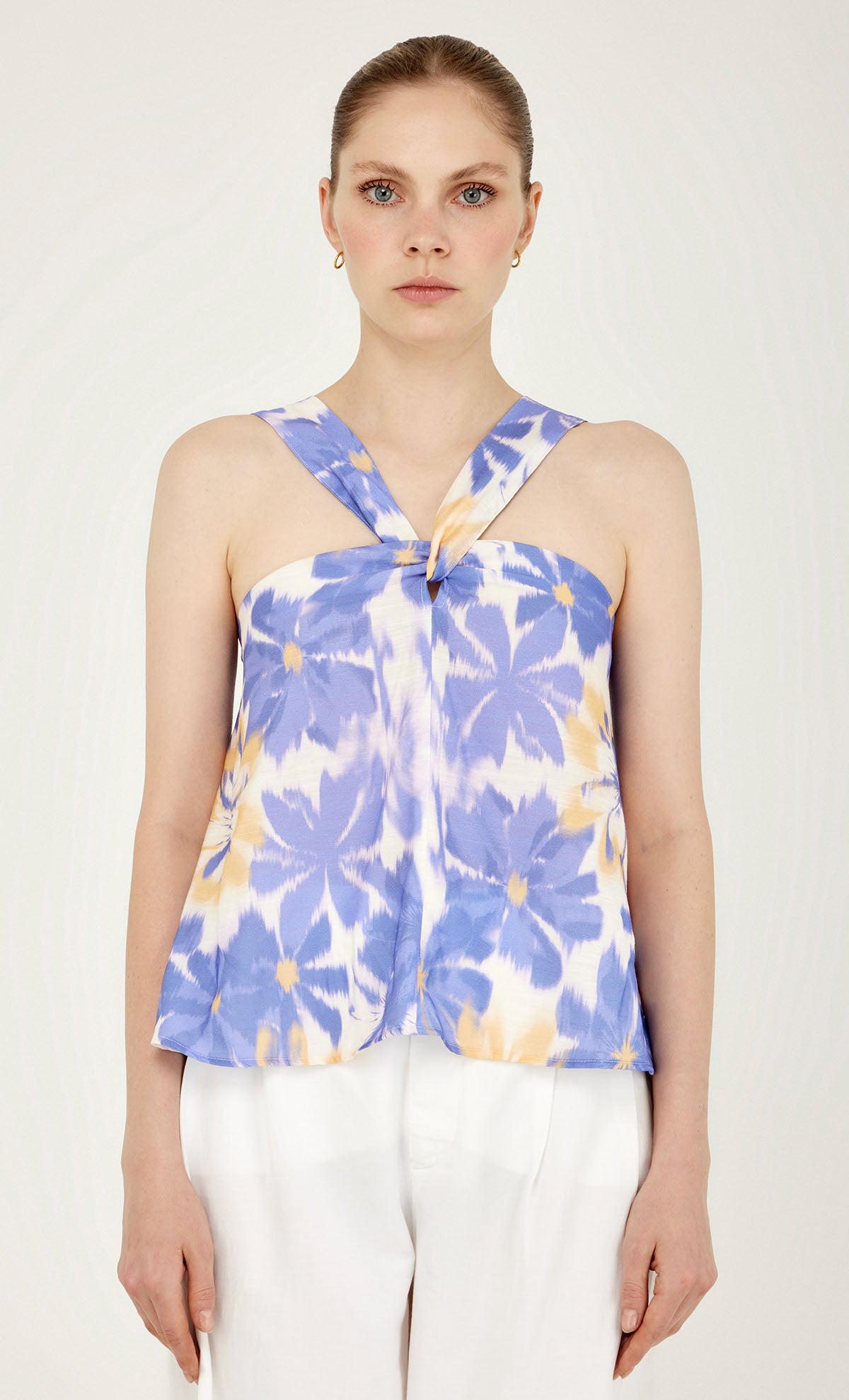 The Tyrian Blouse stands out with its relaxed silhouette and delicate charm. A straight neckline and wide straps offer a subtle structure that enhances the design with a modern, feminine feel. Its fluid drape adds comfort without compromising elegance, while Especia exclusive print gives it a unique character. Perfect for effortless looks that blend freshness and sophistication. Perfect to match with the Vitis Maxi Skirt.
